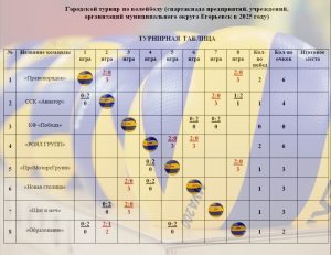 В спортивном комплексе «Мещера», состоялись игры 3-тура в рамках «Городского турнира по волейболу (спартакиада предприятий, учреждений, организаций муниципального округа Егорьевск в 2025 году)РЕЗУЛЬТАТЫ ИГР:»Щит и Меч» — «Победа» (25:18/25:22) 2-0«Правопорядок» — «Авиатор» (25:20/25:21) 2-0«Авиатор» — «Образование» (24:26/27:25/11:15) 1-2