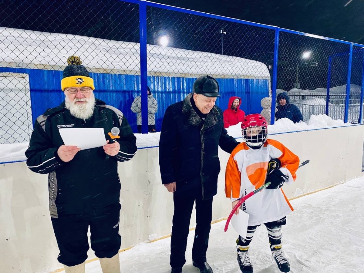 На СК Факел состоялся товарищеский матч по хоккею с шайбой, приуроченный к празднику День защитника Отечества и в поддержку СВО.